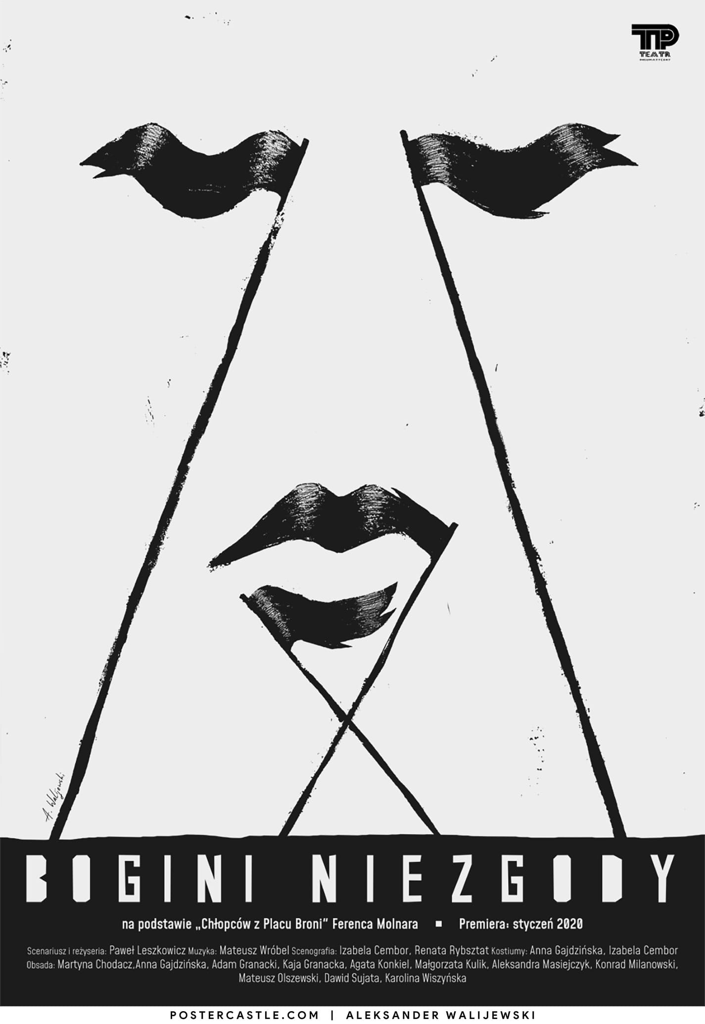 Theatre poster for Goddess of Discord, a play based on The Paul Street Boys novel by Ferenc Molnar. written and directed by Paweł Leszkowicz.