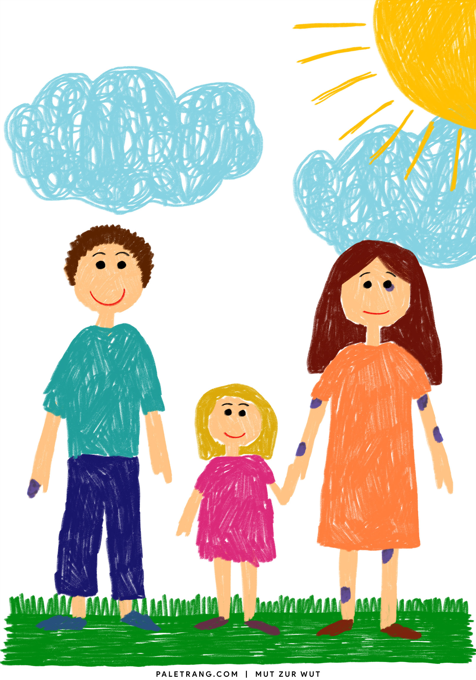 Das Ziel von Wie gemalt ist es, Bewusstsein für häusliche Gewalt zu schaffen und zum Nachdenken über ihre Komplexität anzuregen. Dazu zeigt es eine scheinbar idyllische ’Mutter-Vater-Kind‘- Szene im Stil einer kindlichen Buntstift-Zeichnung, die durch subtile Details auf eine bedrückende Realität schließen lässt.