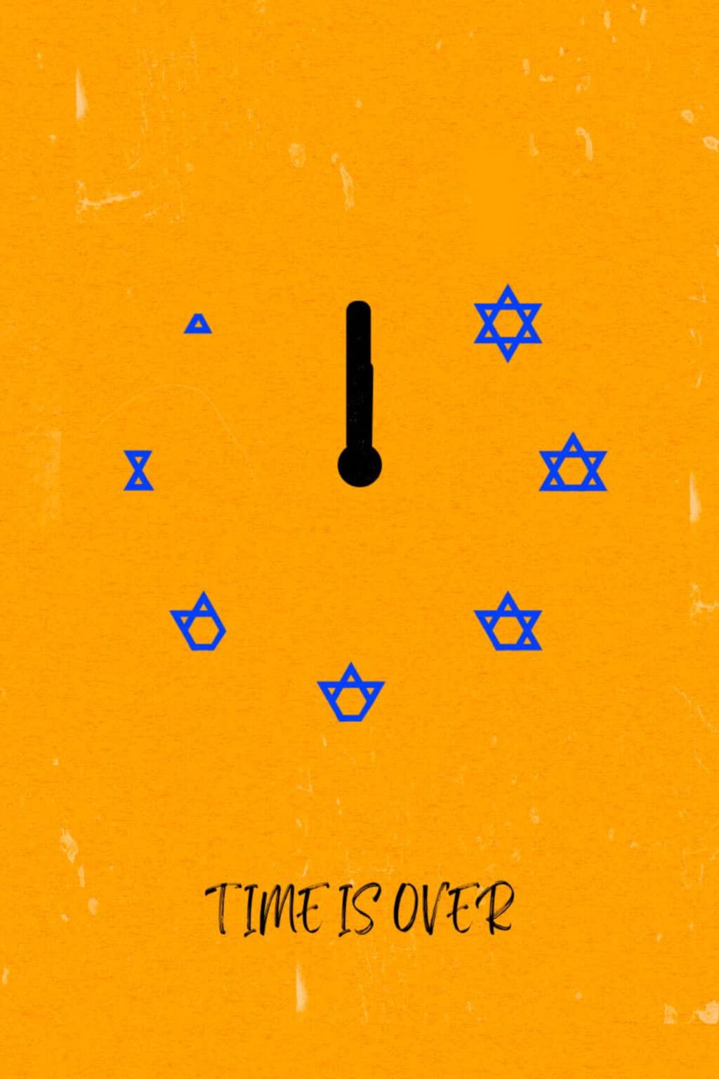 time is over زمان تمام شده است. این کار بصورت مینیمال اجرا شده ومراحل نابودی رژیم جعلی را نمایش می دهد