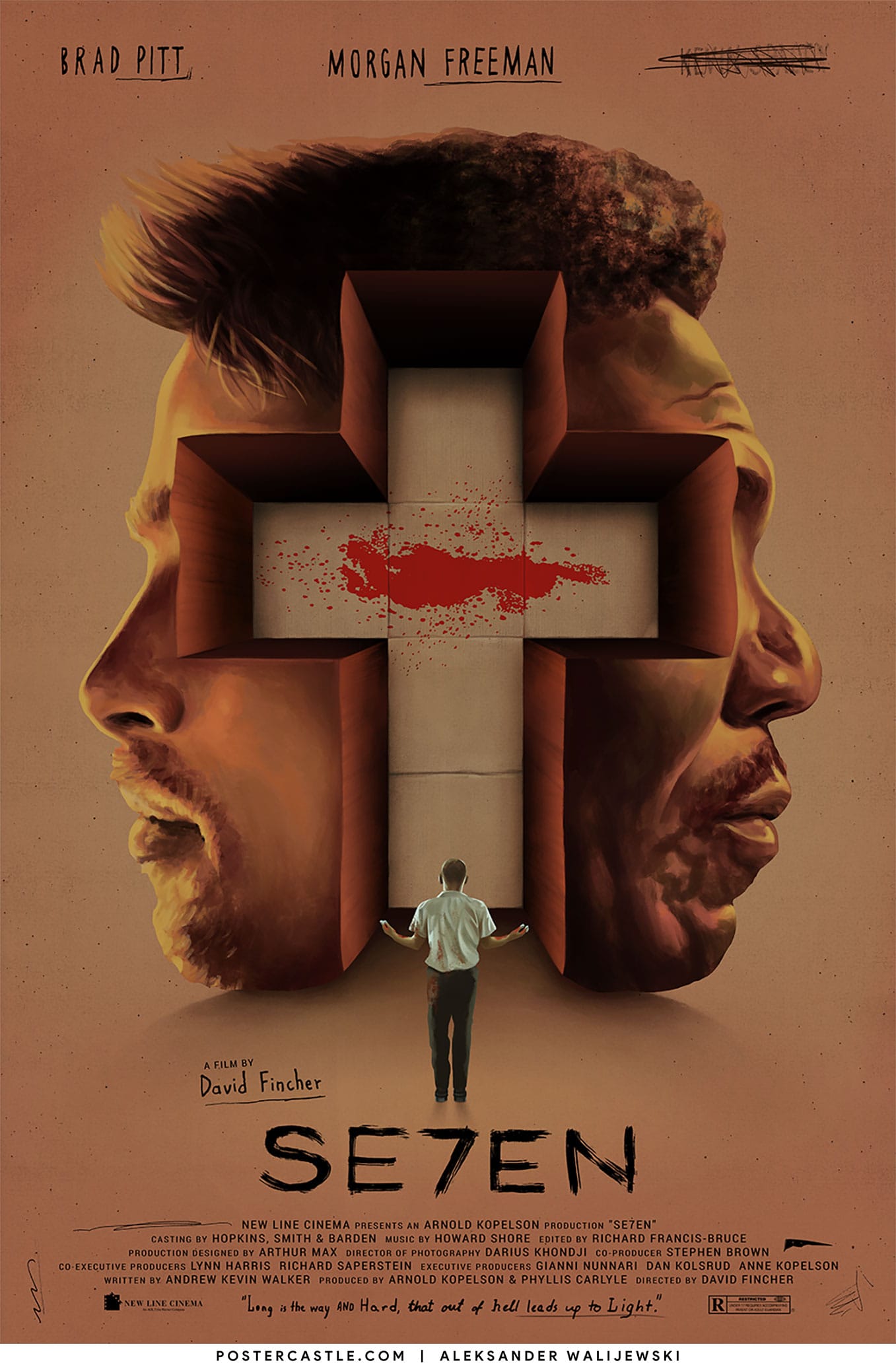 Alternative poster for Seven (1995), a film directed by David Fincher, starring Brad Pitt and Morgan Freeman.