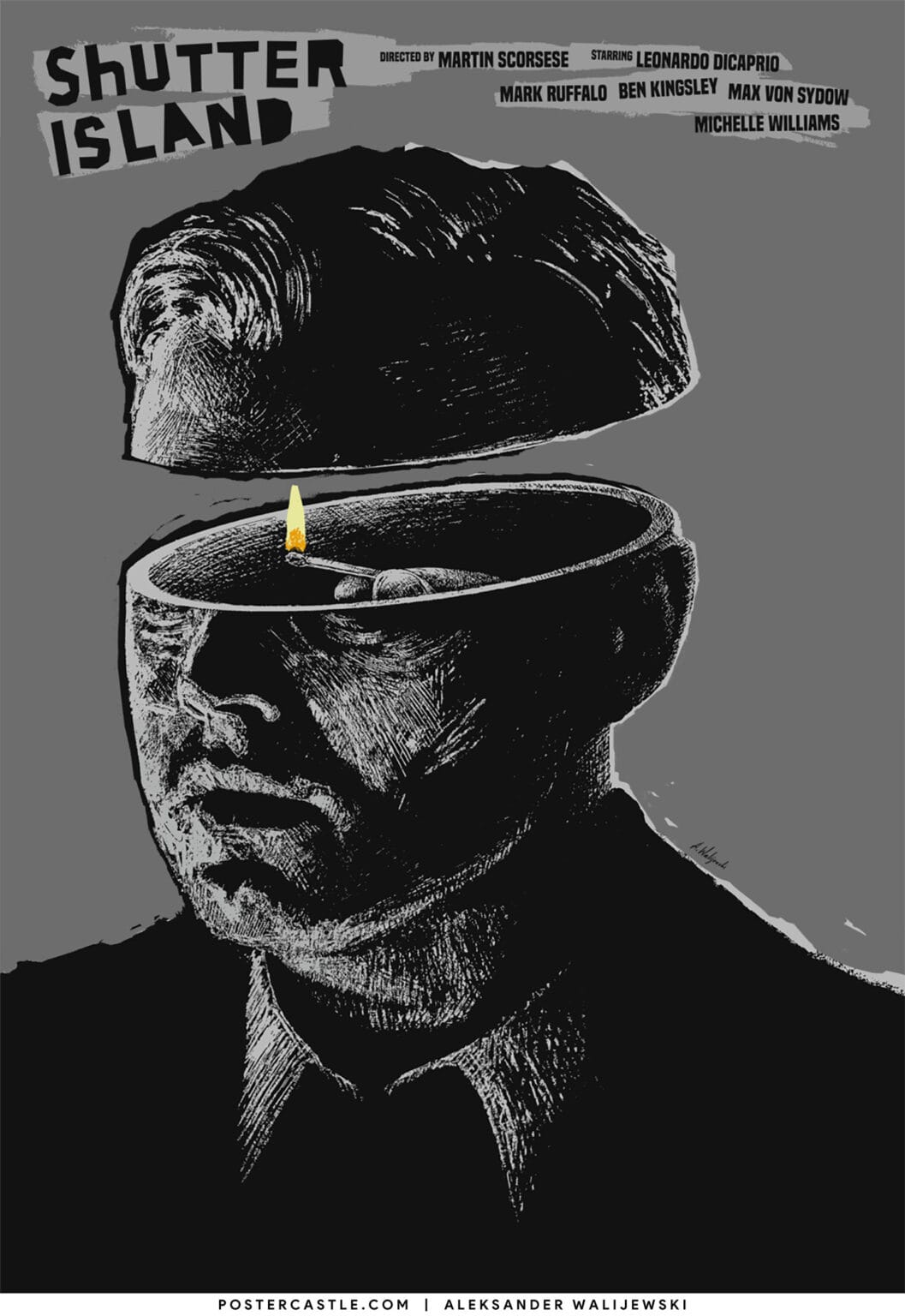 Alternative poster for Shutter Island (2010), a film directed by Martin Scorsese, starring Leonardo DiCaprio, Mark Ruffalo and Ben Kingsley.