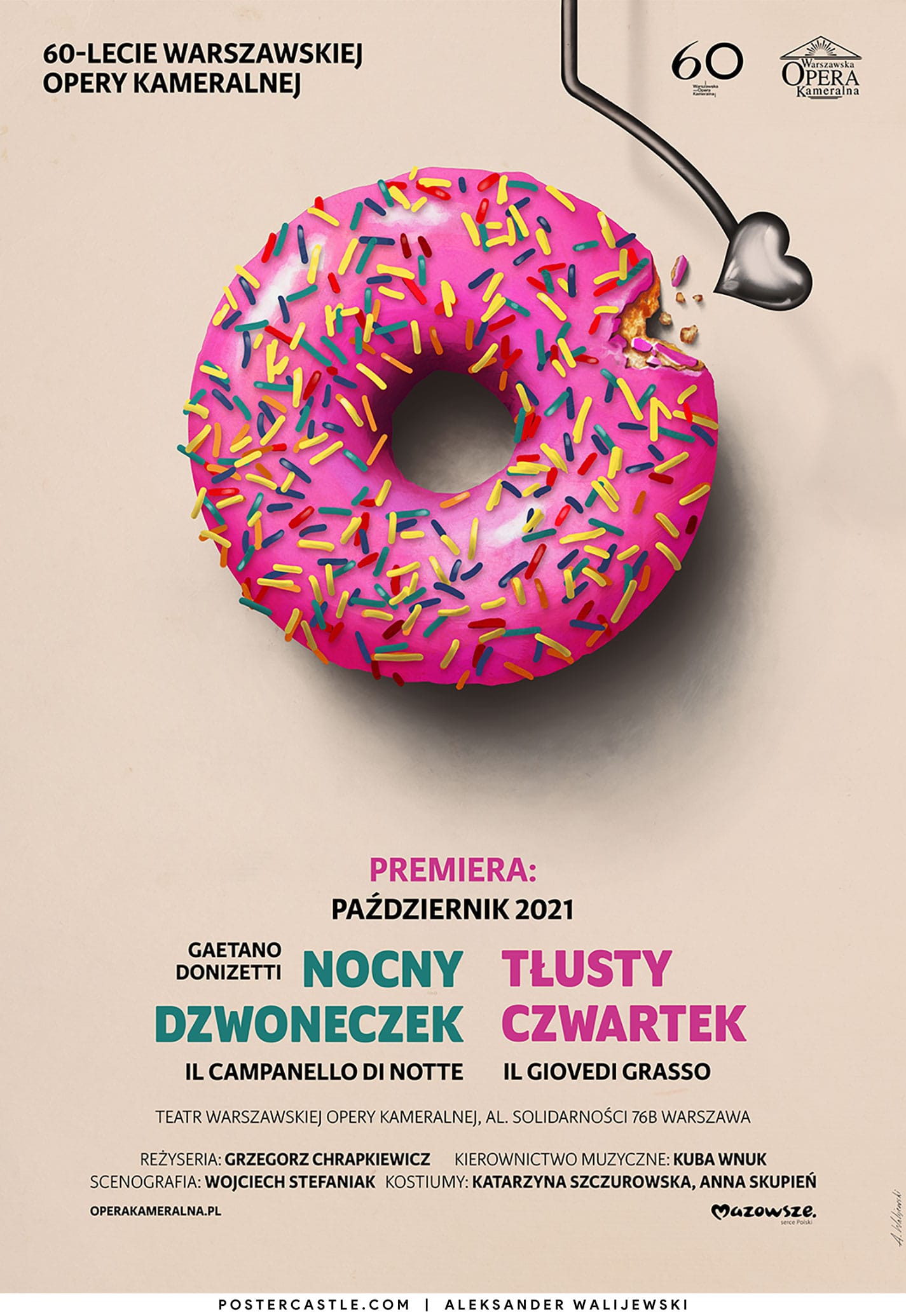 Official poster for The Night Bell & Fat Thursday (2021), an opera by Gaetano Dionizetti, directed by Grzegorz Chrapkiewicz.