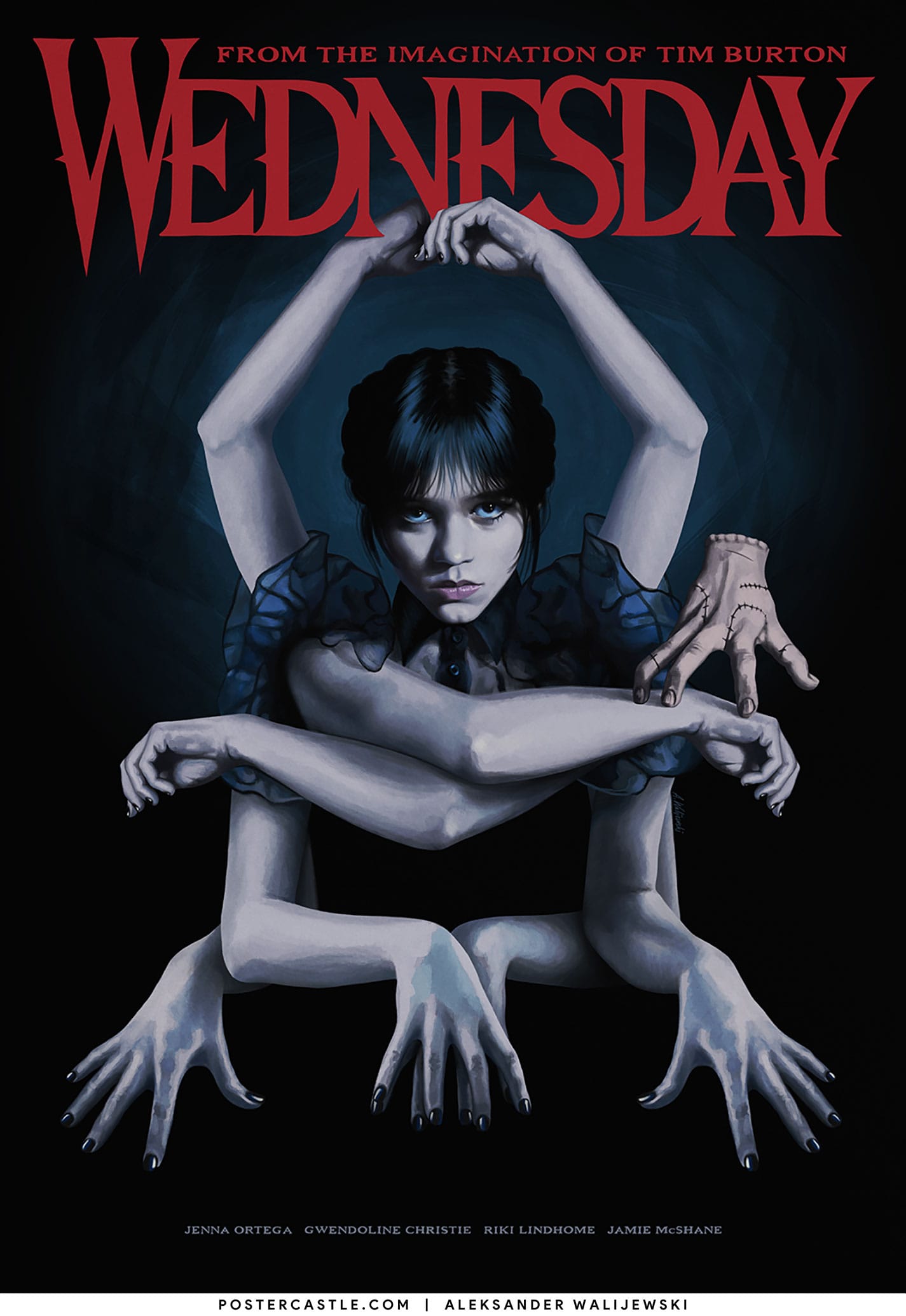 Alternative poster for Wednesday (2022), a TV series directed by Tim Burton, starring Jenna Ortega, Gwendoline Christie, Riki Lindhome and Jamie McShane.