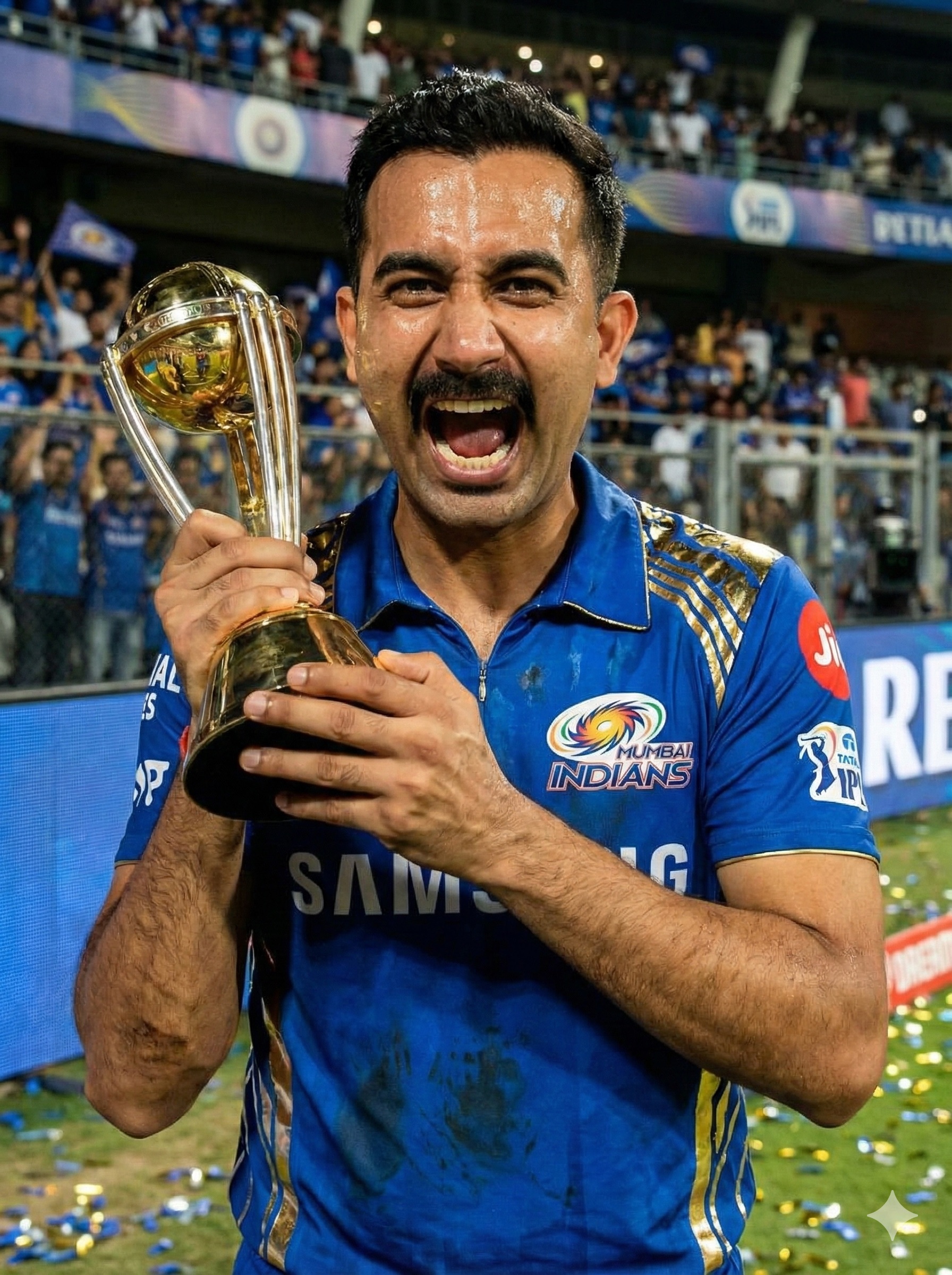 Hyper‑realistic portraits of triumphant athletes clutching their hard‑won trophies in vibrant stadium settings. Each piece captures raw emotion, gleaming metals, rich jersey textures, and cinematic lighting—freezing that pulse‑pounding moment of